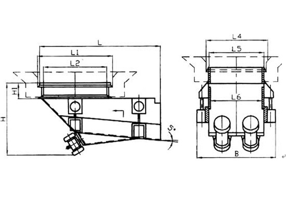 慣性振動給煤機由機架、底板(給煤槽)、傳動平臺、漏斗、閘門、托輥等組成。當電機開動后經(jīng)彈性聯(lián)軸器、減速機、曲柄連桿機構拖動傾料5°的底板在輥上作直線往復運動,煤均勻地卸到其他設備上。